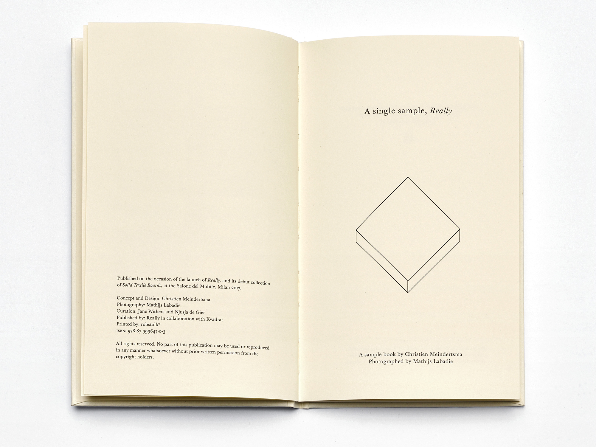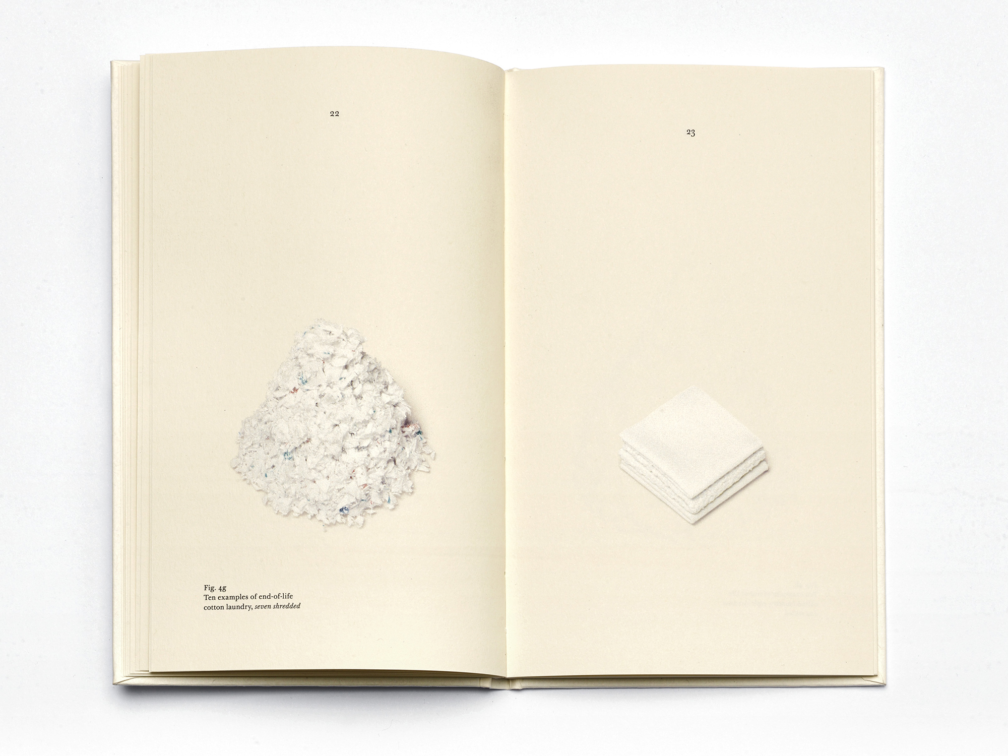 Meindertsma was commissioned to help tell the story for a new innovative material made from end of life textiles. Really Solid Textile Board is a sheet material, suitable for construction and interior applications, that is made from the waste of the textile industry. Meindertsma produced a booklet that illustrates how some everyday waste textiles; a pile of tea towels, sheets and dishcloths, can be transformed into a single sample of Really Solid Textile Board.